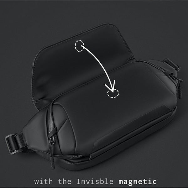 こちらのコンパートメントはマグネット式フラップ、水に強いファスナーを使用することで中の荷物が濡れにくい仕様となっております。