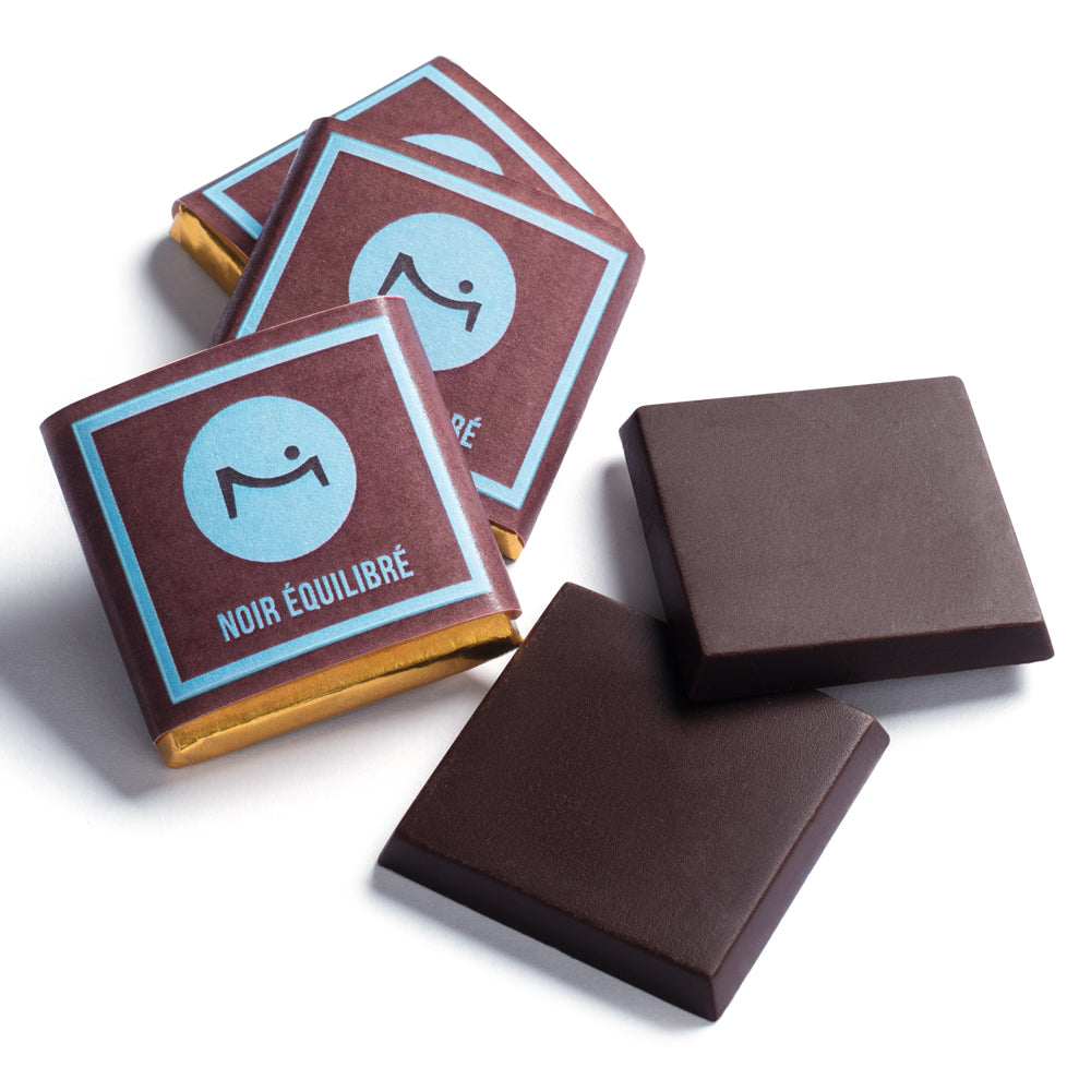 スマートなボックスに、滑らかな口溶けの小さな四角い板チョコレートを、6枚収めました。