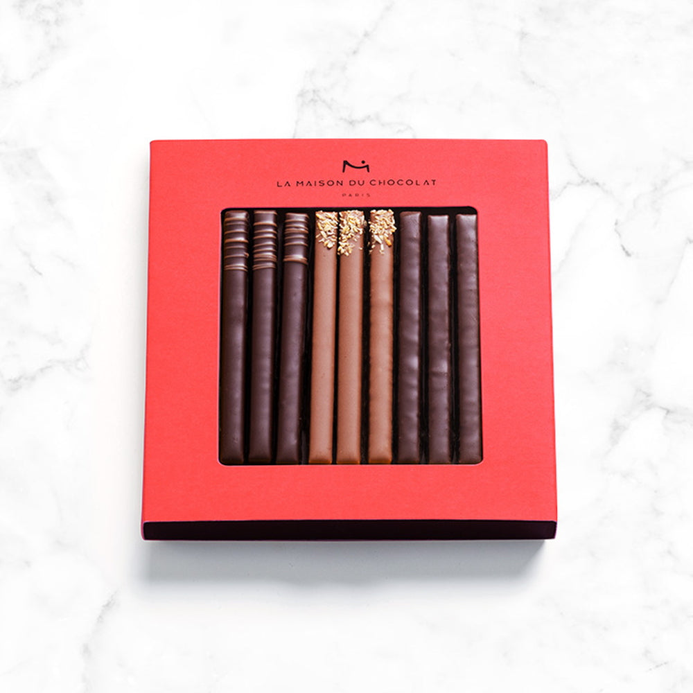軽やかで、カリカリ、サクサクとした食感をお楽しみいただけるバトン状のプラリネです。