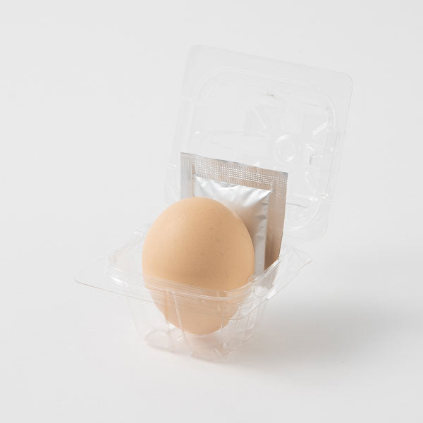 生卵を割る要領で殻を半分に割り、添付の「シロップ」をかけてスプーンでお召しあがりください。