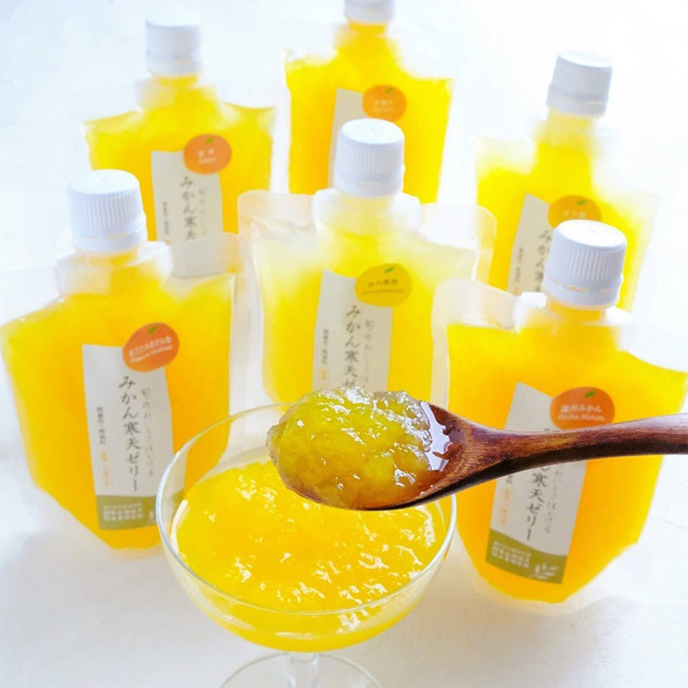 ■当社をはじめとする愛媛県八幡浜市のおいしいみかんで作った飲みやすい寒天ゼリーの8本セット