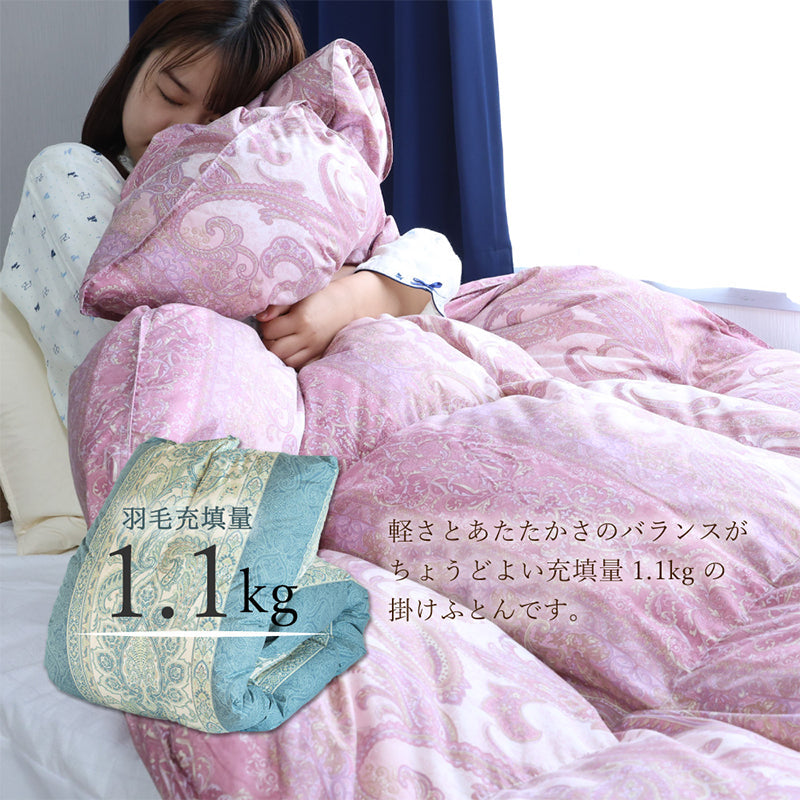 中わた:ダウン70%以上/フェザー30%未満 1.1kg(リサイクル羽毛:ミライクルダウン)