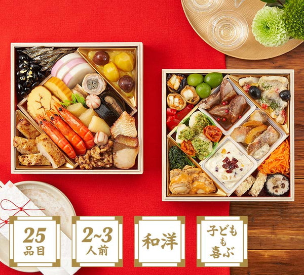 ■商品内容:【2026年おせち予約】オイシックス和洋二段重 高砂(25品目/2-3人前)