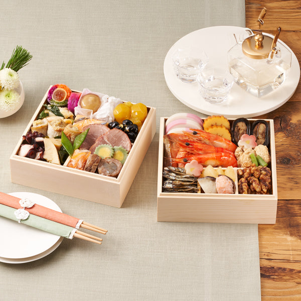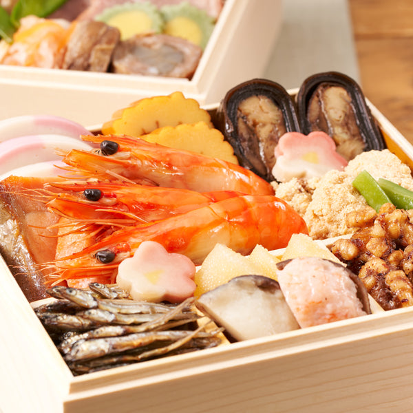 ■新しい一年の縁起を担ぐ、海老や黒豆、田作りなど定番のおせち料理28品を少量ずつ詰め合わせた純和風おせち。お正月気分を味わうために少しだけおせちを楽しみたい、おせち以外のご馳走がメインという方をはじめ、1~2人の少人数のご家族の方にも毎年ご好評いただいております。