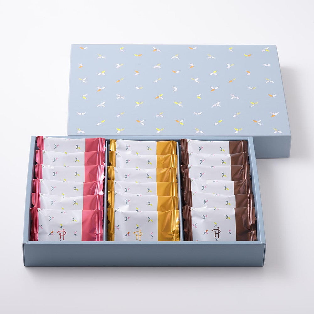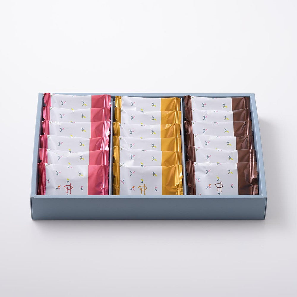 定番のミルクチョコレートとビターチョコレート、独創的な「イスパハン」、3種の詰め合わせです。