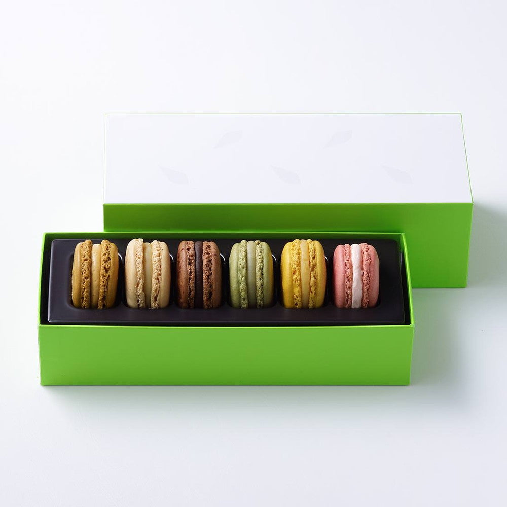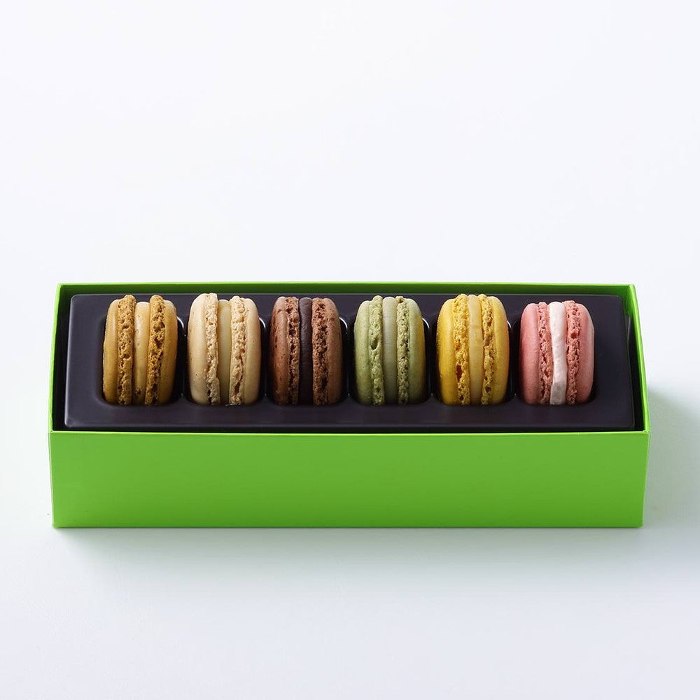ピエール・エルメ・パリの代表アイテム、マカロン。人気の高い定番フレーバー6種を詰め合わせた6個入りギフトボックスです。どなたにも喜ばれる定番の詰め合わせ内容は、贈り物や手土産などのギフトとしても最適です。