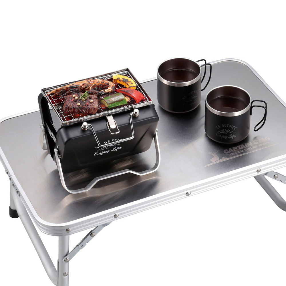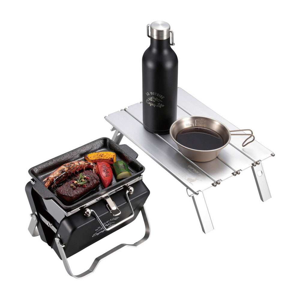 ■ソロキャンプやお花見・行楽に最適なコンパクトサイズのV型卓上グリル。