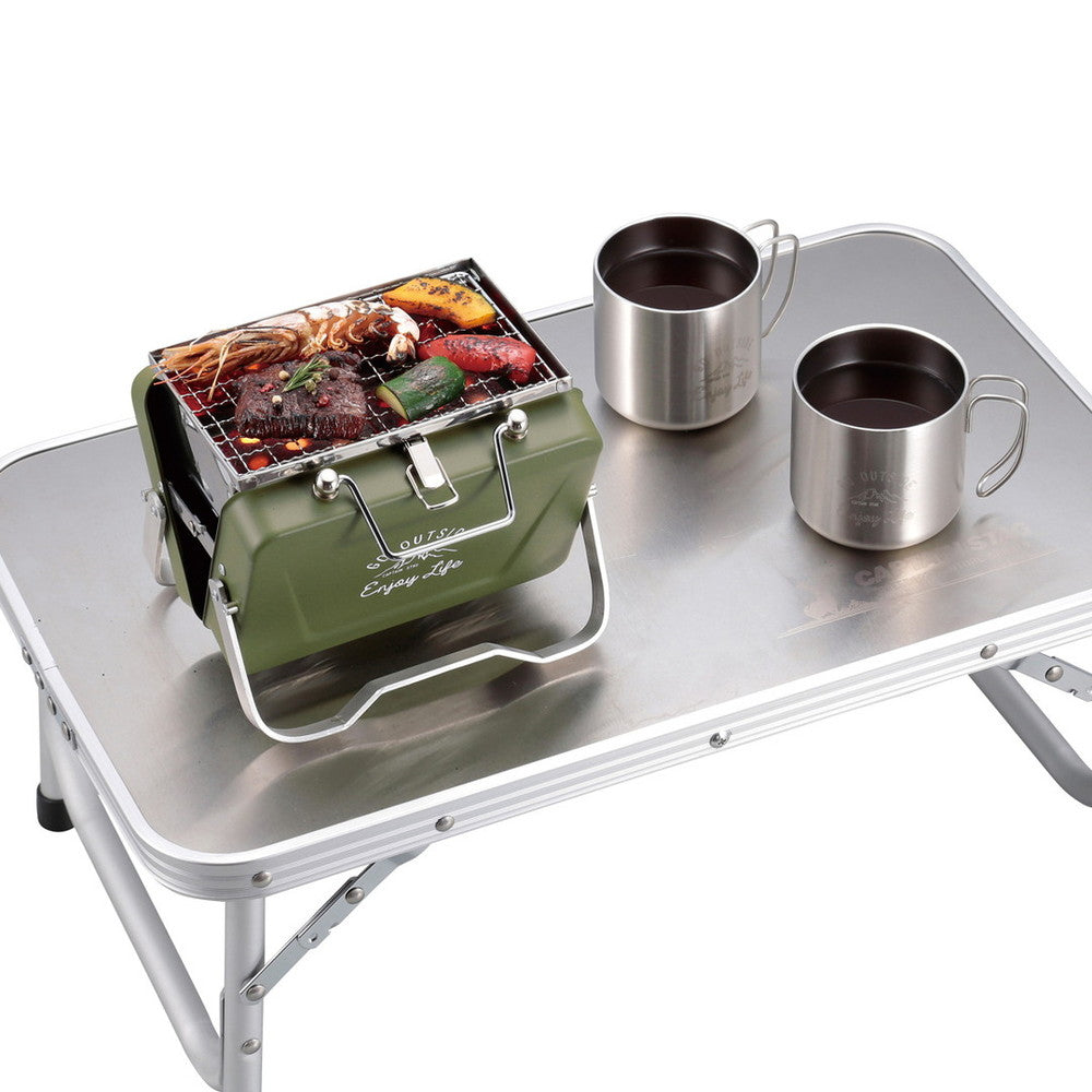 ■ソロキャンプやお花見・行楽に最適なコンパクトサイズのV型卓上グリル。