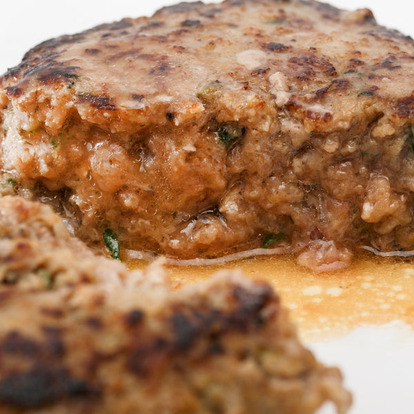 ■予約がとりにくい店ラ・ベットラ・ダ・オチアイ 落合シェフ監修のハンバーグ。牛肉100%のハンバーグに細かく刻んだセロリやパセリを入れ、ブラックペッパーの風味を効かせました。香味野菜の甘みやほのかな香り、ブラックペッパーの刺激が食欲をそそります。香味野菜が苦手・・・という方でも食べられる、ソース不要のジューシーなハンバーグです。