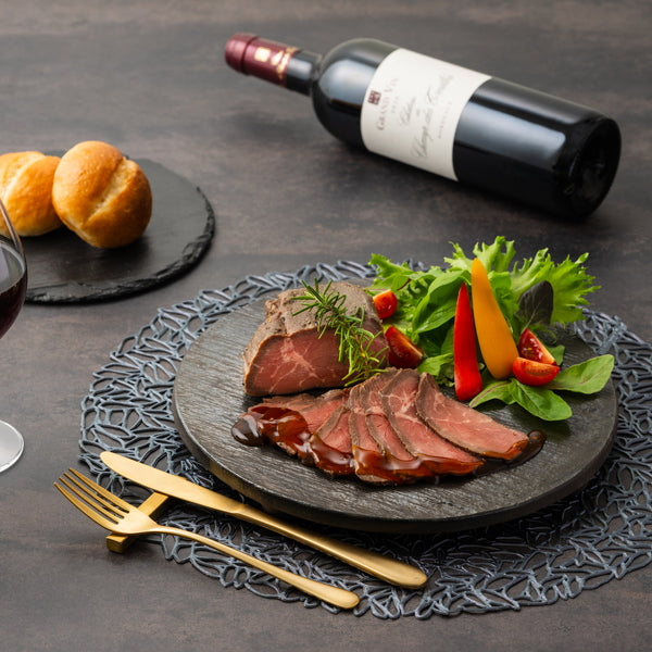 ■ニュージーランドの広大な大地の中で牧草のみで飼育されたグラスフェッドビーフを使用した柔らかなローストビーフ。引き締まった赤身で凝縮した肉本来の旨味を味わえます。真空加熱でじっくり焼き上げ、