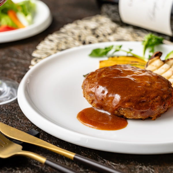 ■ラ・ロシェル坂井宏行シェフのデミグラスソースハンバーグ。しっかり焼き目をつけ中にお肉の旨みを閉じ込めたハンバーグを、こだわりのデミグラスソースと合わせました。湯せんでお召し上がりいただけます。