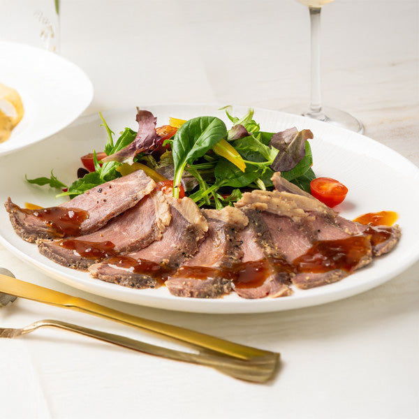 約1日冷蔵解凍し、解凍後、3ミリほどに薄く切りお召し上がりください。