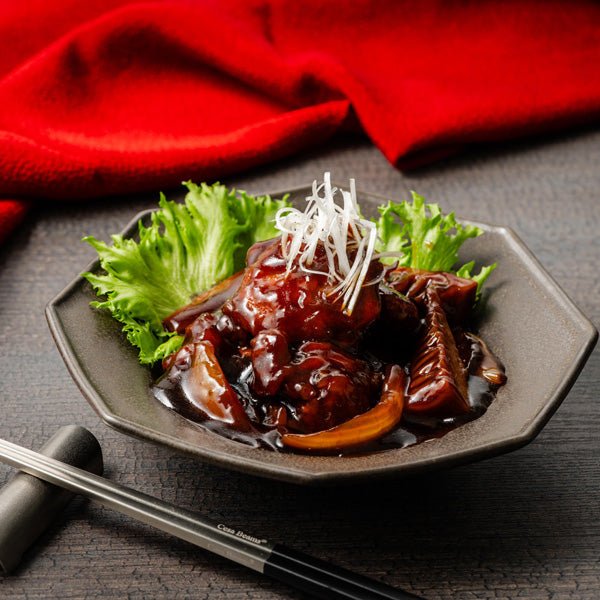 奥深いコクとまろやかな酸味が特徴の黒酢餡が、それぞれの素材の味を最大限に引き立てます。