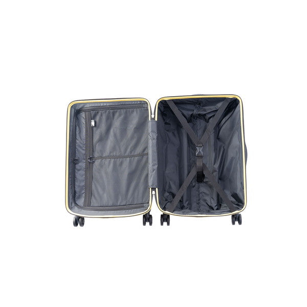 抜群の走行安定性・旋回性を誇る大径50mmダブルホイールキャスターが、凹凸のある路面で実力を発揮するうえに、前輪部には簡単に操作可能なストッパー機能を搭載。電車内や坂道などで便利です。ボディ素材には、新幹線・航空機の窓や防弾ガラスにも採用されている高純度ポリカーボネイトを100%使用しています。ボディ上部4つの角のコーナーパッドが、キズや衝撃からスーツケースを守ります。薄型で耐摩耗性に優れたYKK社製ジッパーを使用。ファスナーの破損を防ぎます。