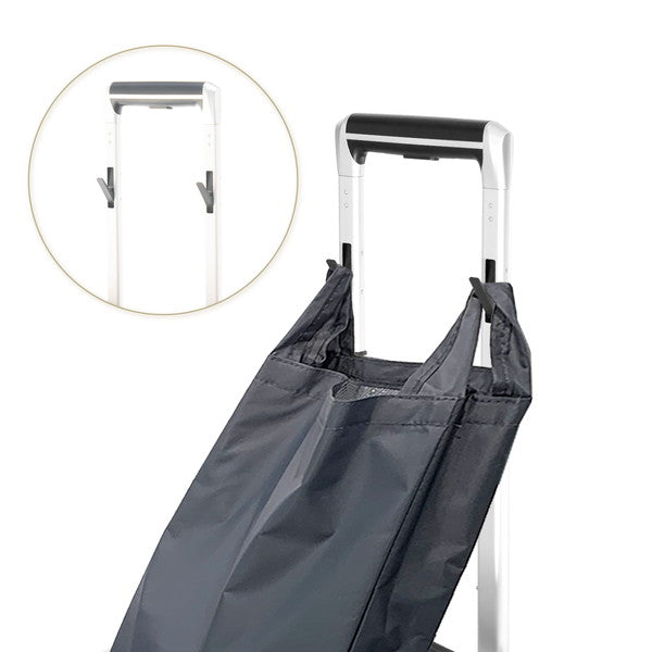 さらに業界初のフック付きトローリーバーを採用。エコバッグ等を下げることができ、荷物が増えても安心です。