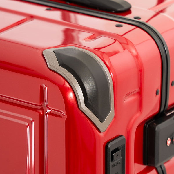 荷降ろしに便利なボトムハンドルのほか、ボディ背面にも台座を設け、キャリーを開けた時に本体を汚すことなく使用できます。