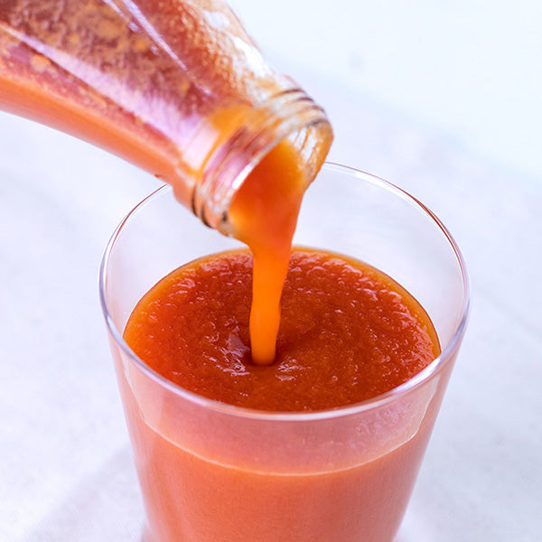 素材の味が活きるストレート果汁。とろーり濃厚で、ドリンクというよりサラダに近い飲みごたえです。手ごろに野菜を補いたいときの習慣に、トマト煮やパスタソースなどお料理にもオススメです。