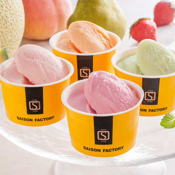 ■博多あまおうや夕張メロンなど、日本の名産フルーツを使い、4つの美味しいアイスを作りました。名産フルーツの優しい味わいは、ご家族全員でお楽しみいただけます。