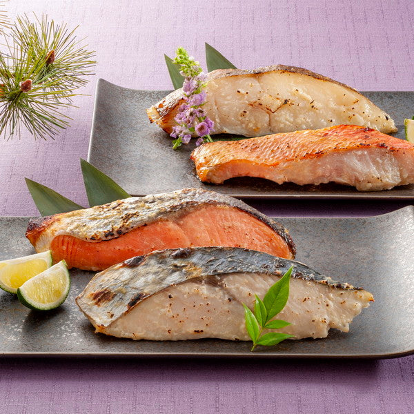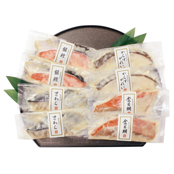 ■商品内容:からすがれい(カナダ産)・さわら(韓国産)・金目鯛(ニュージーランド産)・銀鮭(チリ産)各70g×各2(計8)