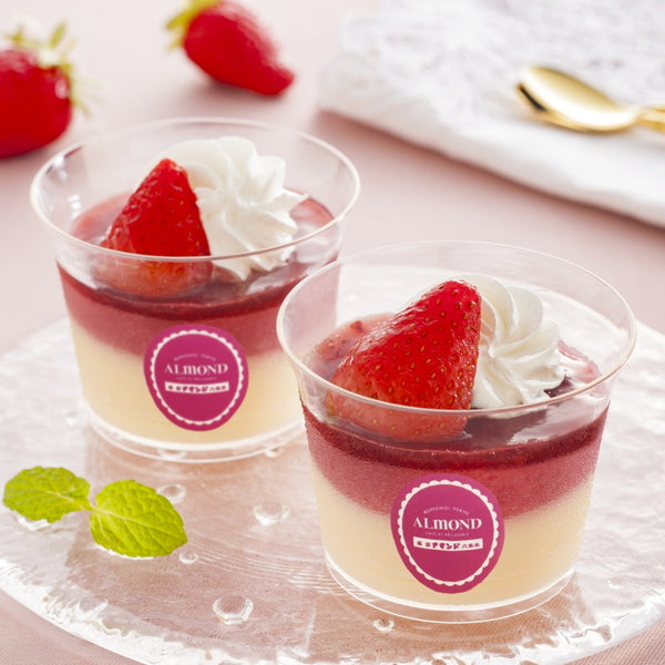 ■六本木アマンドをイメージした可愛らしいプリンパフェ。甘酸っぱい苺のソース、プリン、カスタード感のあるなめらかな口どけのプリンの3層仕立てのデザートです。