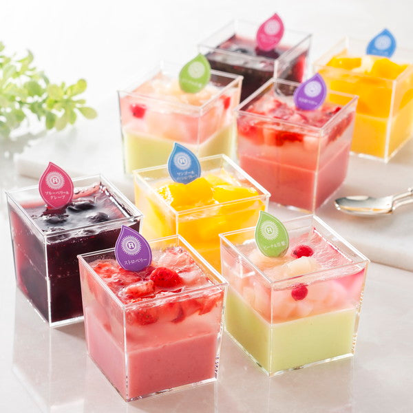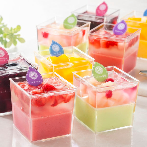 ■商品内容:銀座果実のデザート (ストロベリー・マンゴー&パッションフルーツ・ピーチ&洋梨・ブルーベリー&グレープ 各2)計8個セット