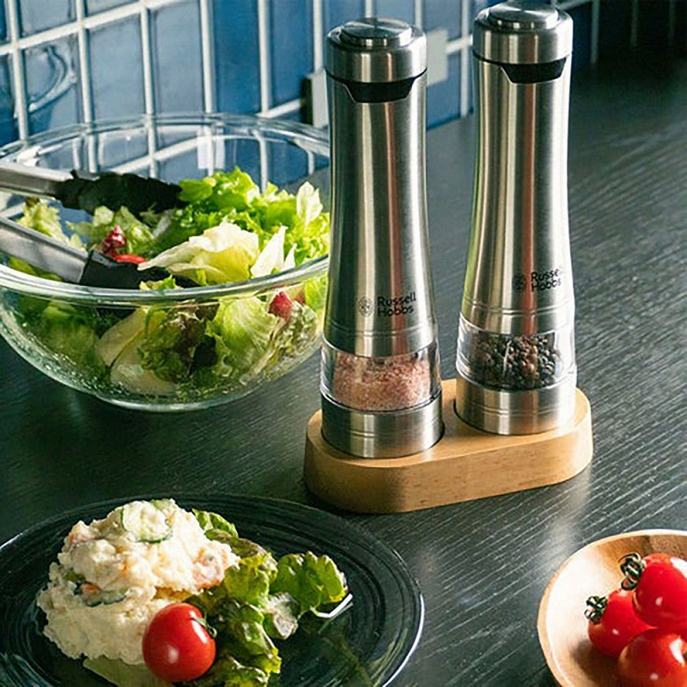 ■商品内容:Russell Hobbs ラッセルホブス 電動ミル ソルト&ペッパー ウッドスタンド セット