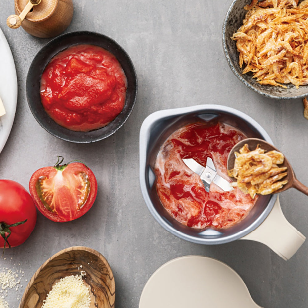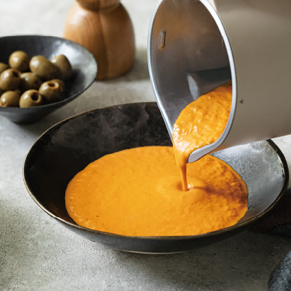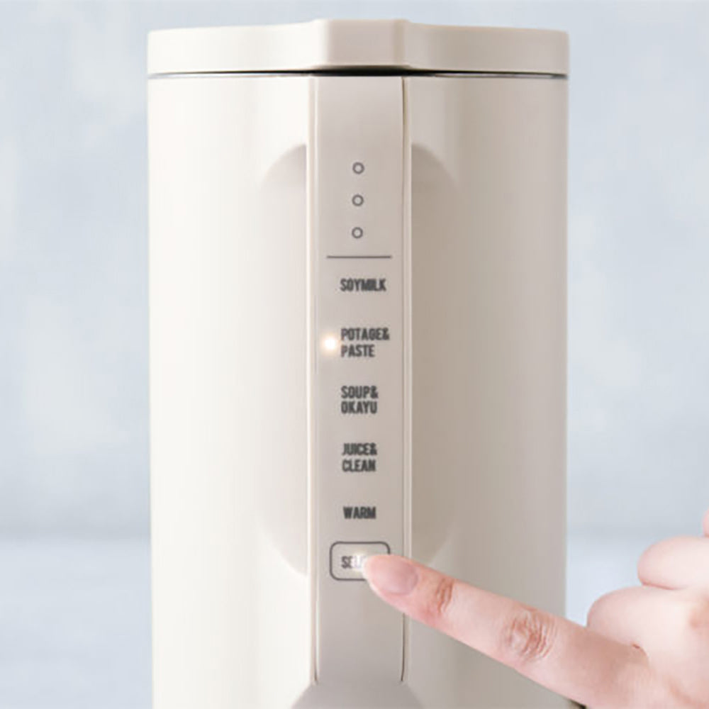 “ほったらかし”でお料理完成!スリムなポット型の自動調理器。材料の刻み具合や加熱温度を、5種類の調理モードごとにコントロールしながら撹拌。なめらかなポタージュや具材の形を残した食べるスープ、おかゆ、豆乳など、手間なく簡単に作れます。家庭用の氷も砕くことができるので、スムージーなどの冷たいメニューもOK!保温できるモードも搭載。容量約600ml。