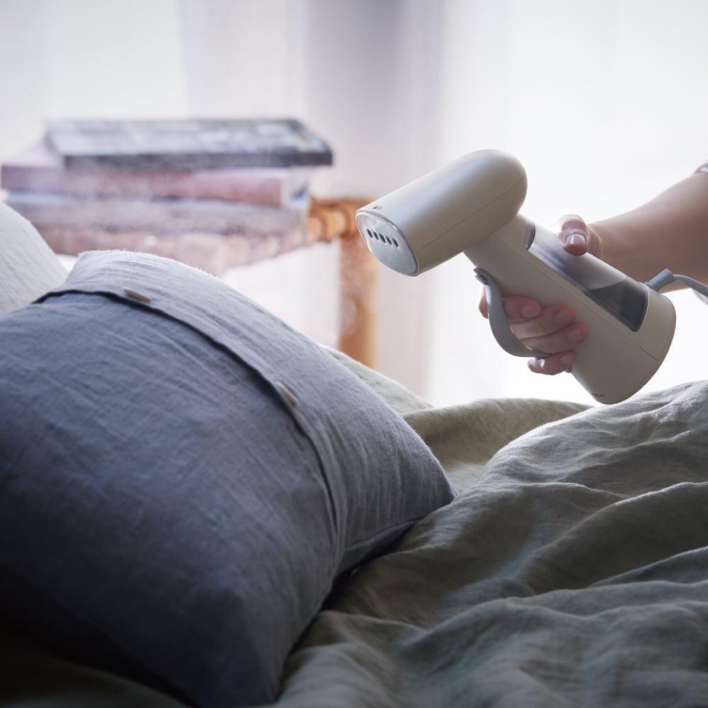 衣類に染みついたタバコや食べ物などのニオイや暮らしの中で発生する細菌を高温スチームでしっかり脱臭(※2)・除菌ケア(※3)。コートやおしゃれ着など洗いにくい衣類や布製品、ソファの臭い取りなどにも使えます。