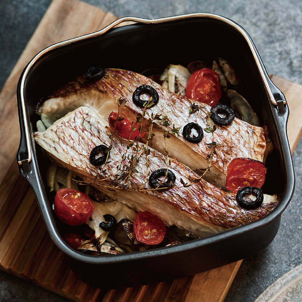 蒸気と熱風で潤いを閉じ込めて焼き上げる【ハイスチーム 】モードを搭載。熱風だけで焼く【エアーオーブン】モード、両モードを連続で調理できる【コンボ】モードも選べます。便利な[インナーポット]が付属。
