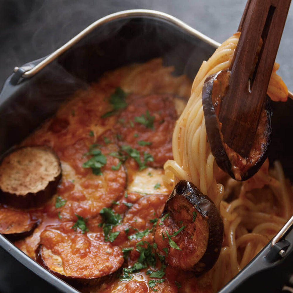 “焼く”も”蒸す”も引き出し式の[バスケット]の中で完結。キッチンが汚れにくいのも嬉しい特徴です。