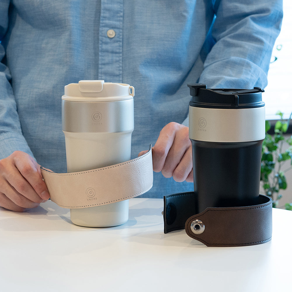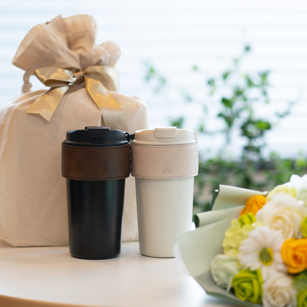 巻かれたカバーがアクセントとなっているデザインで、おしゃれなペアタンブラーセットとしてギフトにもお勧めです。
