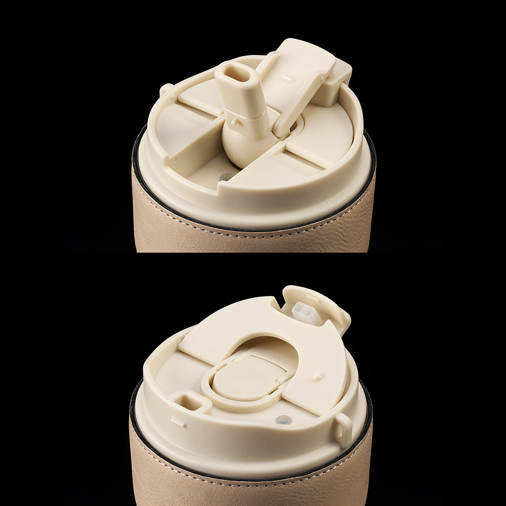 ストローの他に蓋ゴムシールも取り外し可能。皮のカバー以外は水洗いが可能です。