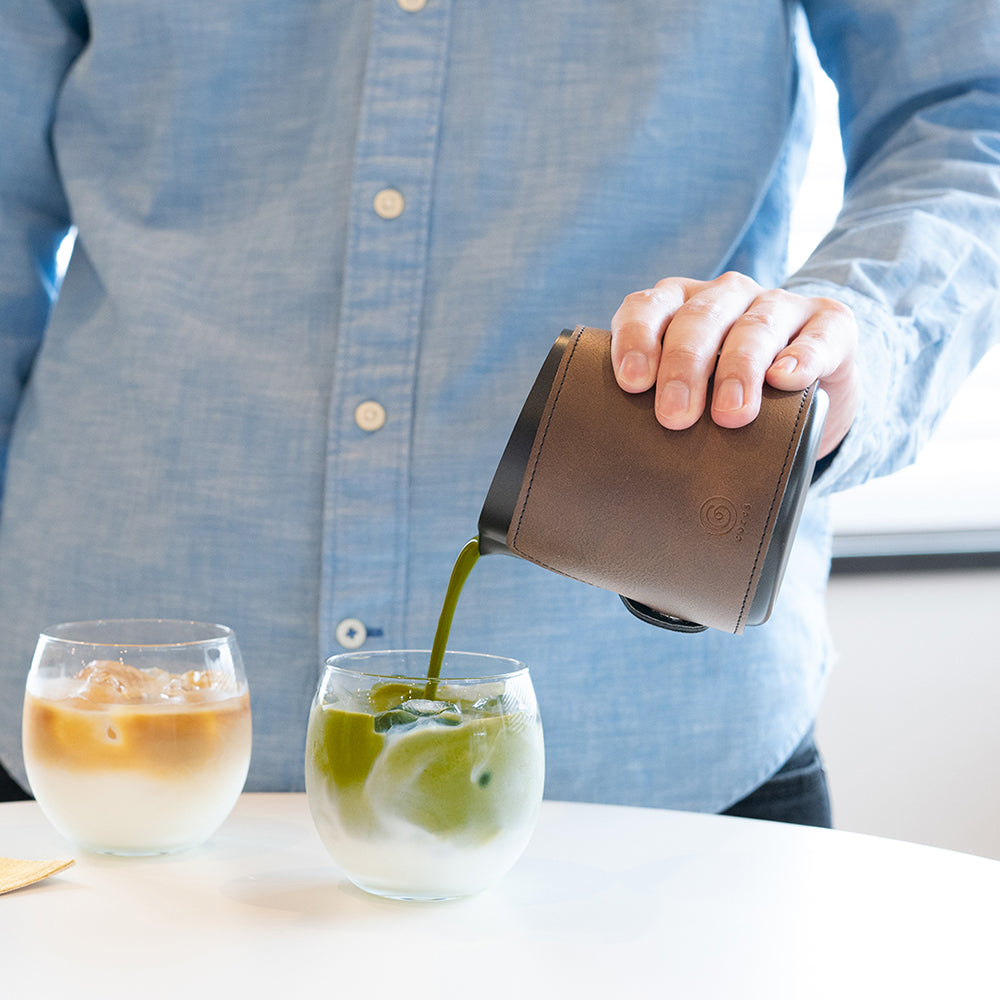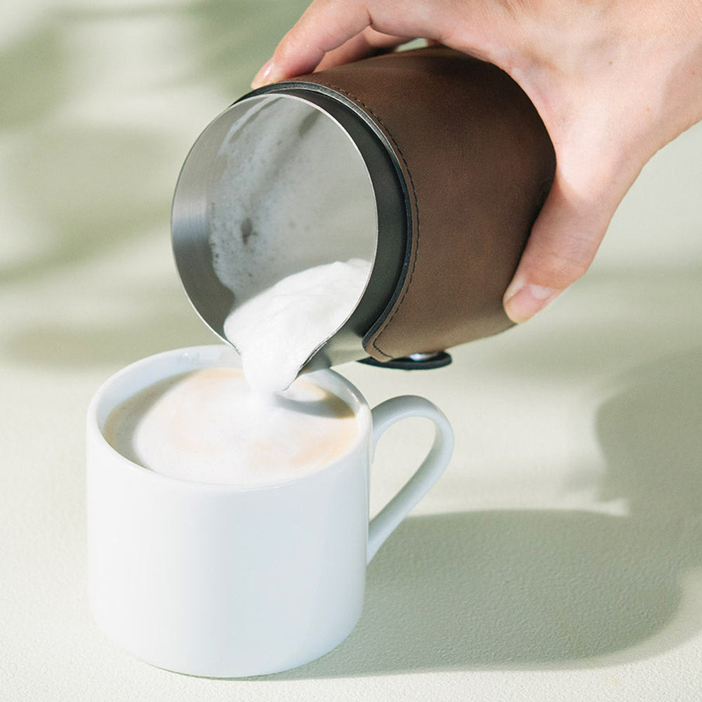 エスプレッソやドリップコーヒーなどに合わせる、フォームミルクやスチームミルクを作るのに便利なミルクピッチャーです。ラテアートでの使用時は、ハンドルが無い分、注ぎ口と持ち手の距離が近く、細かな表現が可能です。ココアや抹茶など、ミルクと合わせたアレンジドリンクの攪拌用にと、便利に幅広く使えます。