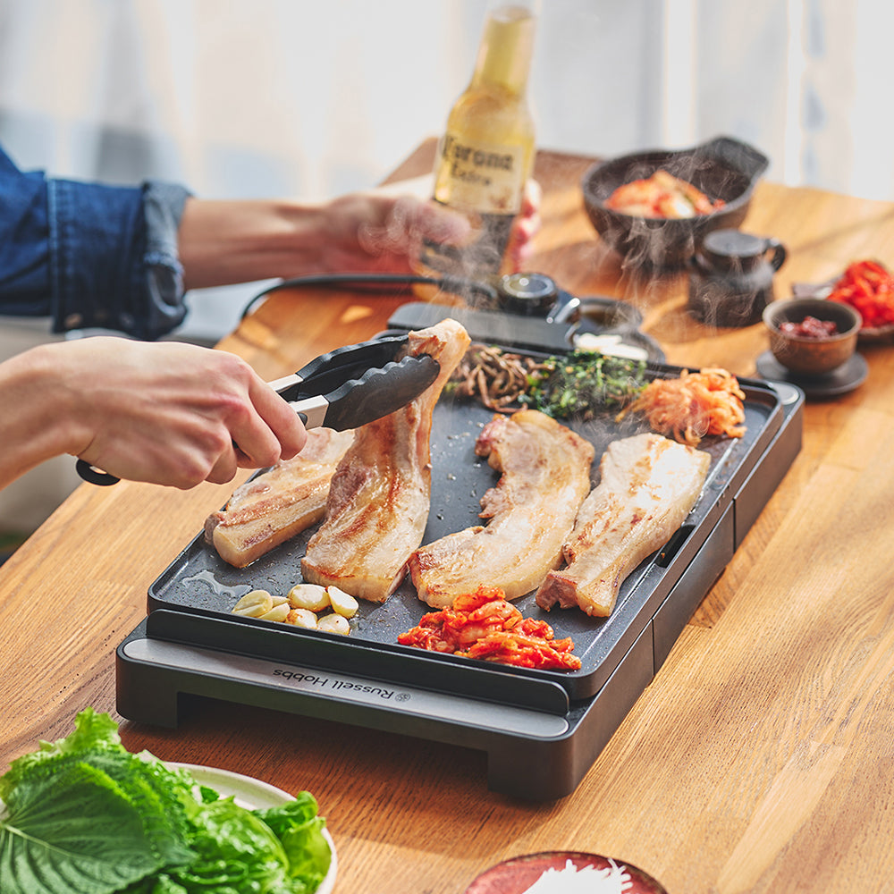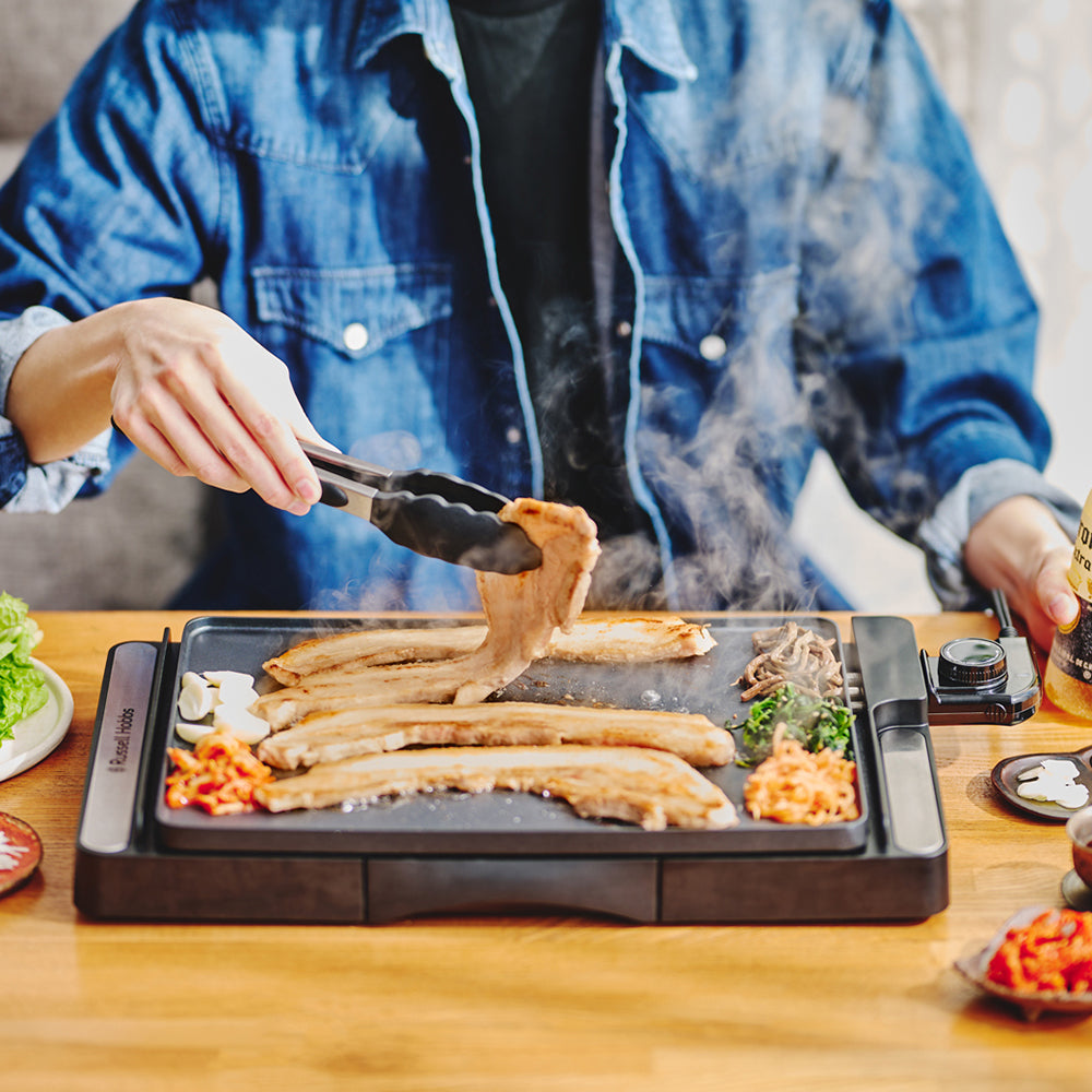 朝はマフィンのベーコンサンドとスクランブルエッグ、お昼はピザや揚げ物の温め直し、夜は焼肉やチーズフォンデュと、ひとり暮らしの方や忙しいカップルでも、ベーシックホットプレートが1台あれば、自宅での調理が手軽になります。